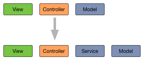 以上是标准的对MVC模式的解释,但是现实开发中我们真的遵循了MVC的架构了么,我们用的框架都是MVC的框架, 有 Thinkphp, CodeIgniter,Yii ,但是现实情况是大部分人在控制器层写了太多的业务代码,导致一个控制器的方法变的越来越难维护,为什么他们不把这些业务代码放到模型中呢,我的理解,也许是在很多的框架里,一个模型会对应一个数据表,是一一对应的关系,而且一个模型也默认继承ORM操作类,也就是说在大多数框架里,模型被定义为了表的操作类,这时候我们就会困惑,模型是这样的话,我在模型里放的业务代码应该是跟对应的表相关的才是合理的,然而我们的业务往往不是用表的种类来拆封的,这个时候写程序就会很纠结,有些代码放到模型里感觉不合适,放到控制器里又觉的累赘,这时候我们应该引入新的一层这就是我们要说的“Service(服务层)”。