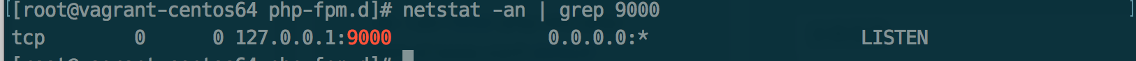 netstat -an | grep 9000, 可以看到 php-fpm 已经在监听 9000 端口了。